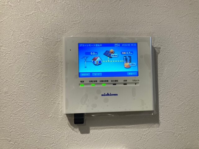 高い発電量を持つQセルズの太陽光パネル5.13kwの発電量を賄えるよう、蓄電池も大容量の14.9kwhを導入しました。築1年という新築のお家で、景観を損なわないようお家周りの設置はまとめてすることでスタイリッシュにすることができました。