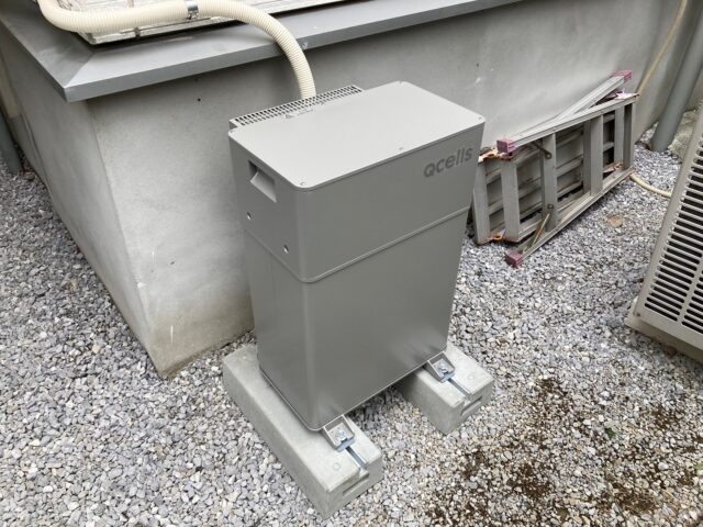 日当たりが良くないことをご心配されていましたが、発電量を正確に出し、ご満足いただける発電量となりました。パネルの枚数に合わせ蓄電池は容量控えめの9.7kwhのものを導入しました。外回りの設置場所もご相談して、まとめて設置させていただきました。